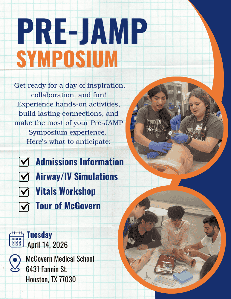 The Pre-JAMP Symposium is a one day event intended for current high school juniors and seniors and undergraduate college students who are interested in the medical field.