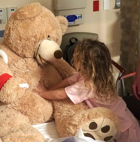 Operating Room: Adults and children helped with induction of our “patient” (an oversized teddy bear) by placing monitors, pre-oxygenating, learning how to control IV fluids, giving medications, and controlling the OR table.