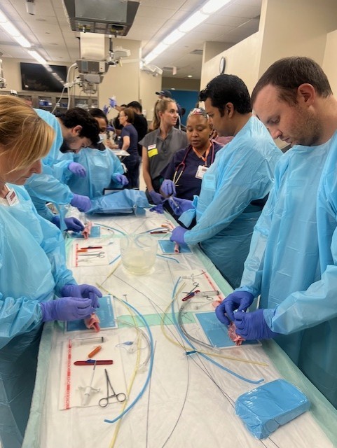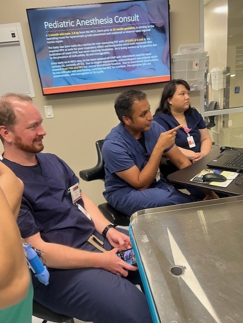 Dr. Ekeoduru then led a lecture on Ethical Concerns in Anesthesiology, covering topics such as perioperative DNR reconciliation, assent, mature minors vs. emancipated minors, and FDA Pediatric Neurotoxicity warnings. Later, an immersive 1-hour workshop on Disaster Preparedness, led by Dr. Gangadharan and her team, included segments on “Stop the Bleed”, “Incident Command Mass Casualty OR Management”, and Intraop Polytrauma”.