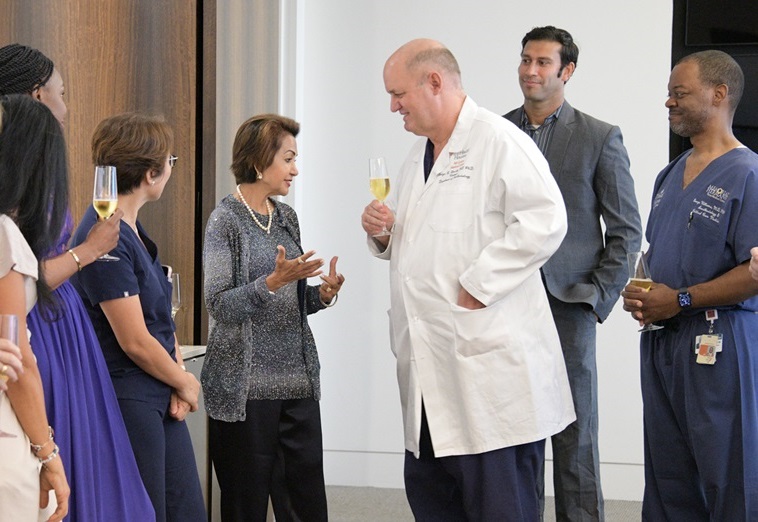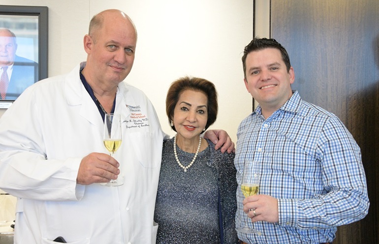 On Friday, October 25, 2024, we held a celebratory reception at III, by Wolfgang Puck, for Dr. Maya Suresh’s retirement from the department. Prior to her farewell speech, Dr. Holger Eltzschig gave a toast, recognizing her incredible year as a professor with tenure and chief of obstetric anesthesiology since 2019. She was honored not only as an outstanding clinician since 1980, but as an administrator, leader, and one of the most special teachers/mentors and leaders at McGovern Medical School.