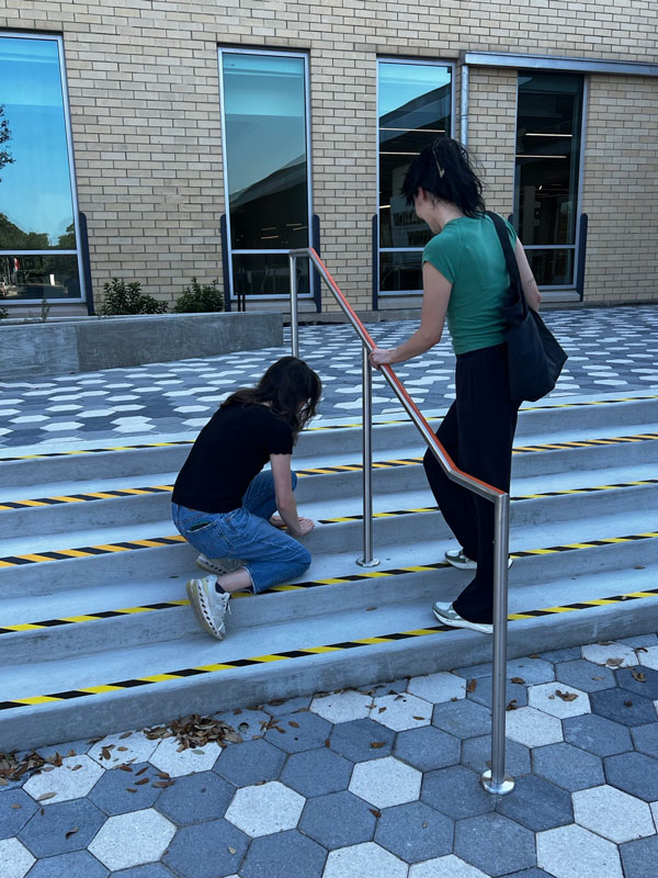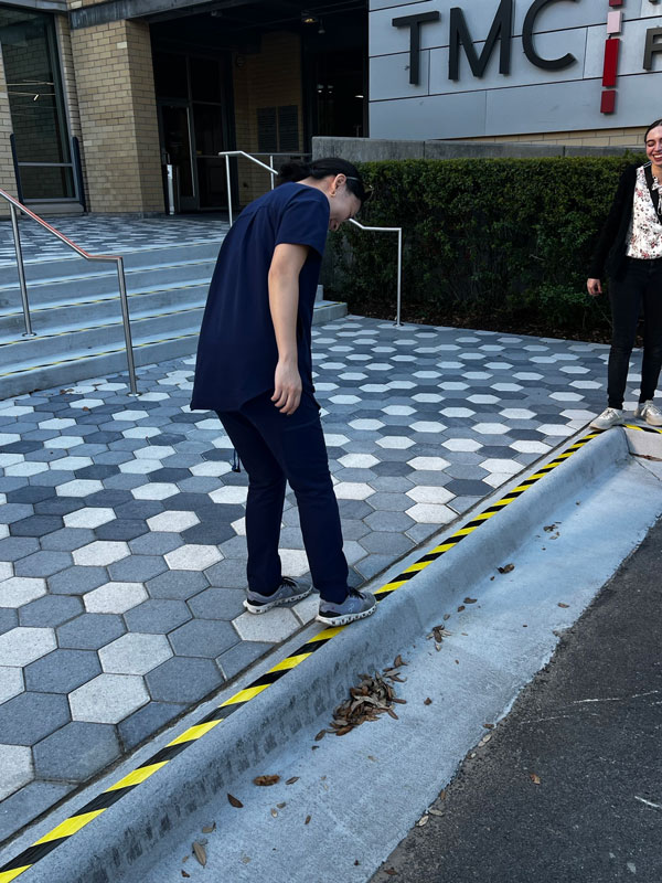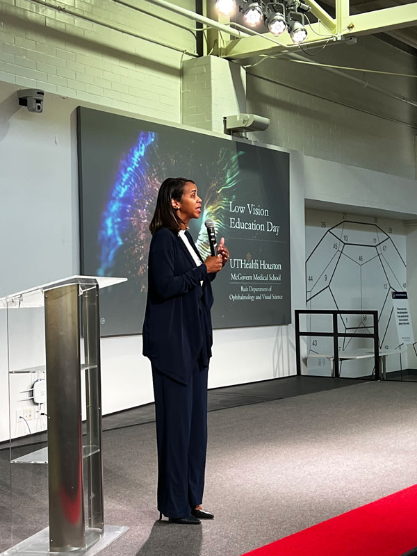 The Ruiz Department of Ophthalmology and Visual Science hosted Low Vision Education Day, Sept. 12 at the TMC Innovation Factory. Altogether, 150 attendees at the event helped with taping steps to make them safe for visually impaired patients and learned sighted guide to help visually impaired people walk.