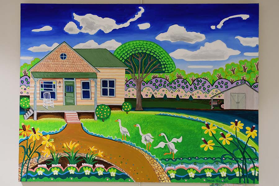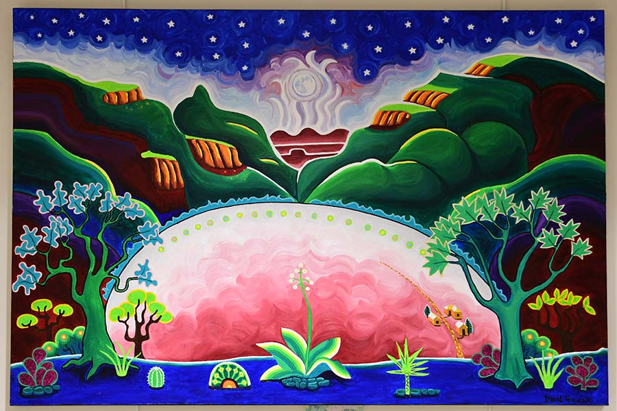 The newest exhibit on the McGovern Medical School Art Wall features the vibrant and emotionally resonant work of David Teasdale, a Texas-based artist and alumni of the UTHealth Houston School of Dentistry, whose paintings celebrate the beauty of nature, faith, and spontaneous creativity.