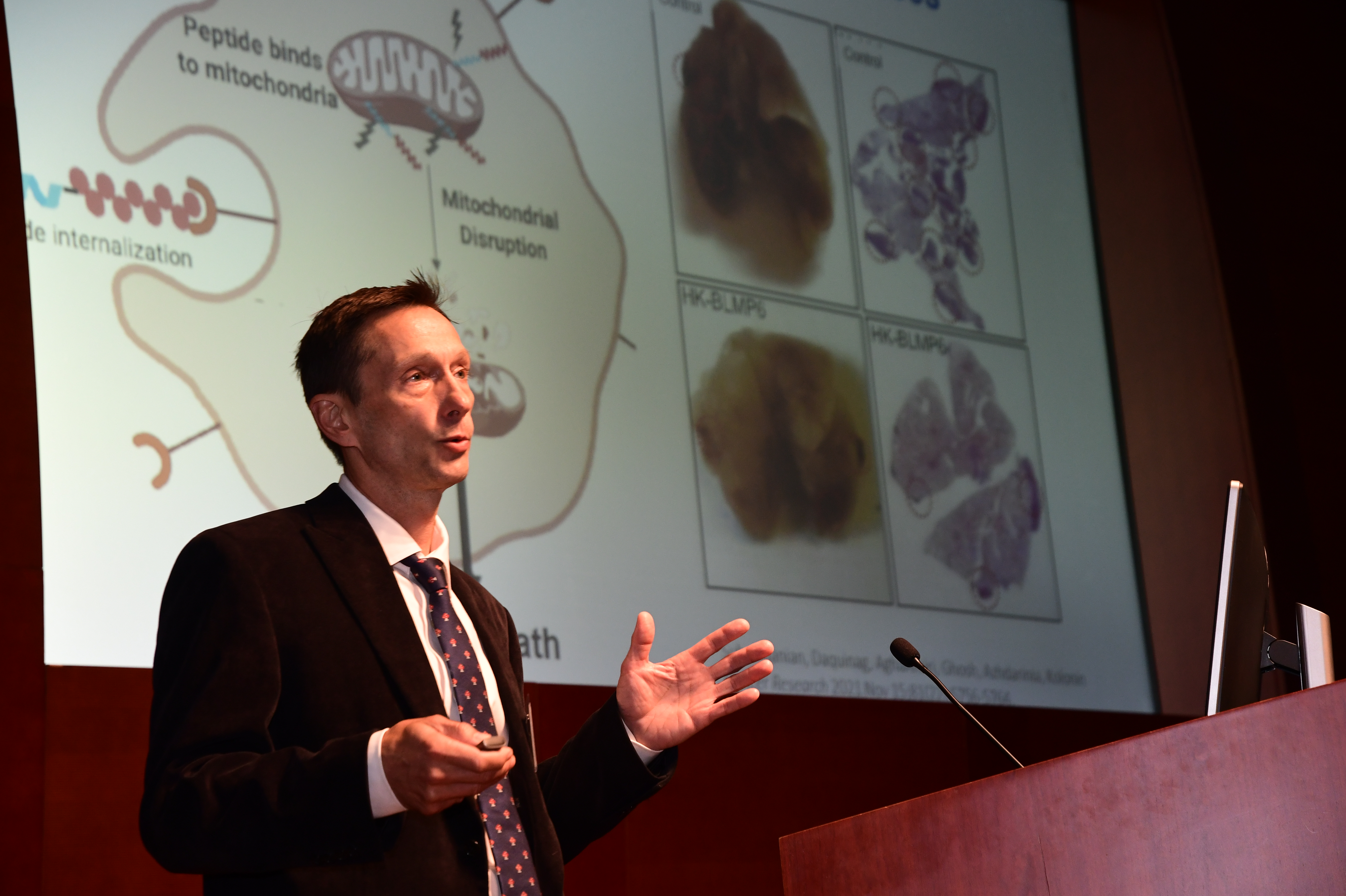The Brown Foundation Institute of Molecular Medicine for the Prevention of Human Diseases at McGovern Medical School at UTHealth Houston hosts the annual IMMPact Symposium, on Oct. 14. The theme for the 2025 edition of the symposium was “Targeting Time: Imaging and Innovation in Aging Biology,” and featured presentations from Mikhail Kolonin, PhD, professor Harry E. Bovay, Jr. Distinguished University Chair in Metabolic and Degenerative Diseases; and Ali Azhdarinia, PhD, professor in the Center for Translational Cancer Research.
