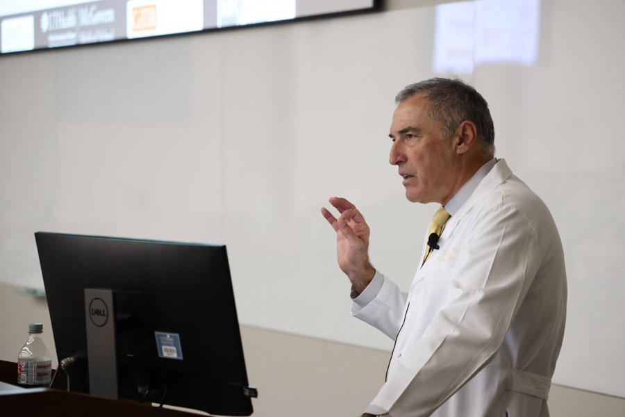 Charles Cox, Jr., MD, professor in the Department of Pediatric Surgery and director of the Pediatric Trauma Program at Children’s Memorial Hermann Hospital presents the 2025 Dean’s Lecture on Dec. 4 in MSB 3.001. Cox presented his lecture on the “Evolution of cell therapies for traumatic brain injury: From idea to clinical trials.”