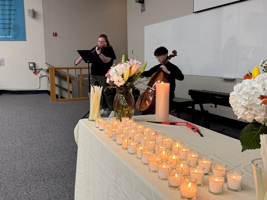 The memorial ceremony featured musical performances from first-year medical students Paul Kim (piano and cello), Mariele Patungan (vocals), David Kurian (piano), Laila Fahed (vocals), Noah Mathai (guitar), and Victoria Hlavinka (violin). Students then lit 42 candles to honor each of the 42 individuals who donated their bodies to medical education.