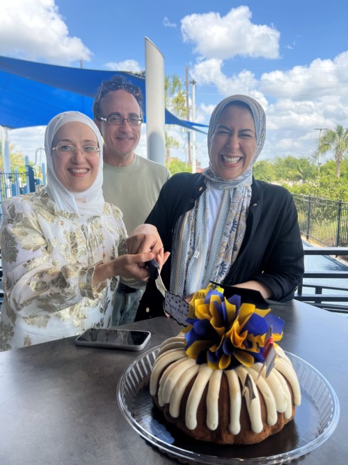 (L-R) Ferial Darwish Shihadeh, MD; Michael Yafi, MD; and Sarah Mahmoud, MD, celebrated the completion of their programs at a joint get-together in early June. Dr. Shihadeh will complete the program July 6, and Dr. Mahmoud will complete it on August 17.