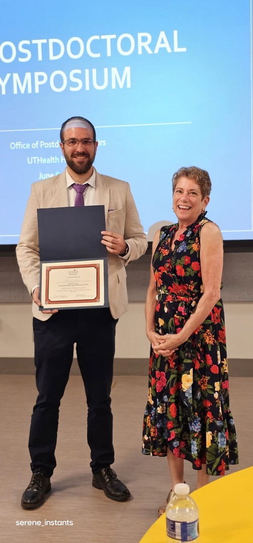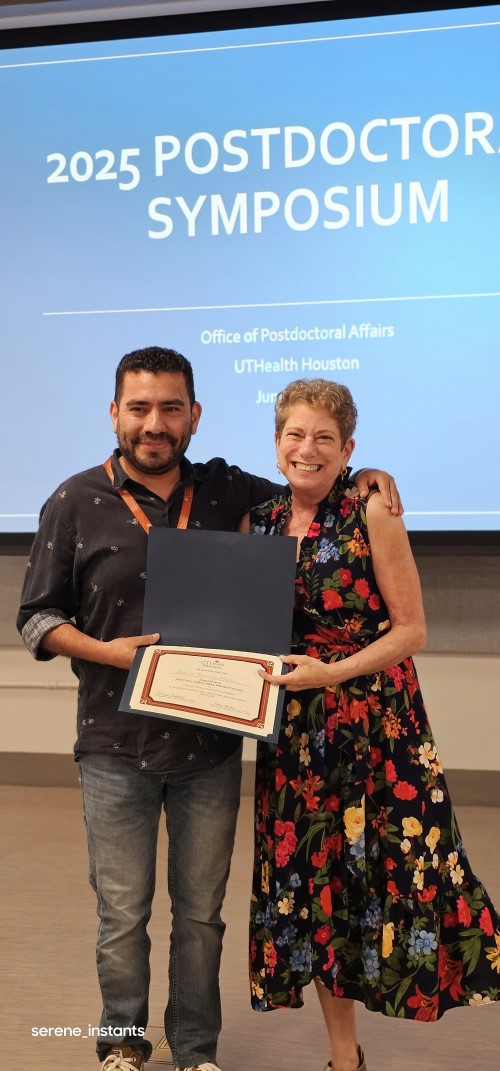 The Office of Postdoctoral Affairs presented the UTHealth Houston Postdoctoral Research Symposium on June 6 in the MSB Fifth Floor Gallery. More than 120 attendees heard from keynote speaker Carmen W. Dessauer, PhD, John P. and Kathrine G. McGovern Distinguished Chair, Department of Integrative Biology and Pharmacology, as well as presentations from postdoctoral researchers from across McGovern. The top three presentations were all from the Department of Pediatrics!